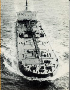 On the high seas these 250,000 tons tankers “KULU”, owned by the Kulu Tanker Corporation of Panama, uses an inert gas system to blanket the oil tanks and considerably reduce the possibility of explosions. The system utilises the waste exhaust gases from the boilers, which after combustion are inert but contain various undesirable corrosive products in gaseous form.