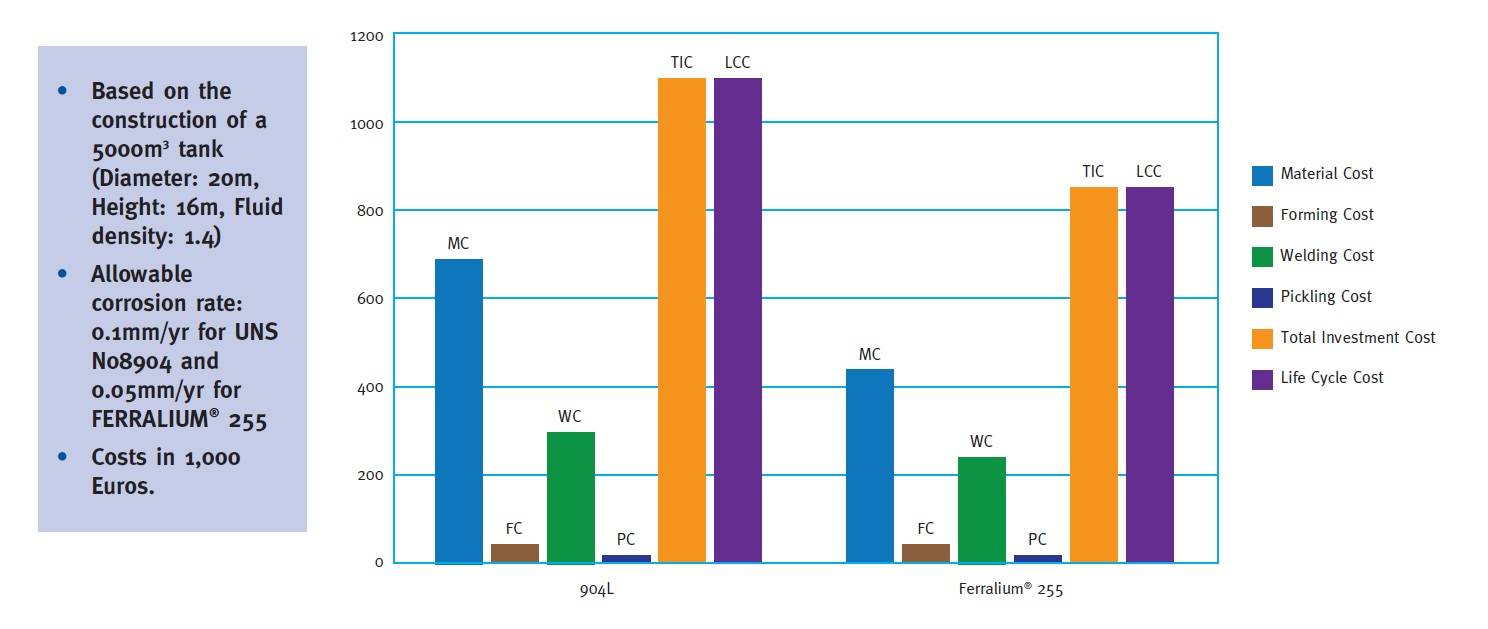 For such tanks, the higher mechanical properties of Ferralium can result in material savings by reducing the wall thickness by up to 25% compared with lower grade stainless steels, which can also simplify and speed-up the welding operation.